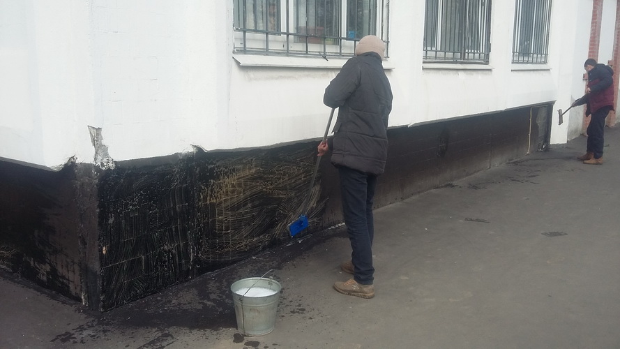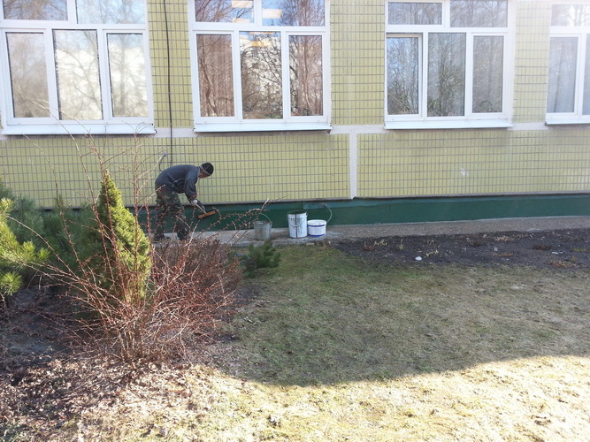 Несмотря на дождливую погоду, в зданиях Центра образования проведены работы по промывке цоколей.