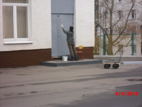 Начаты работы по покраске цоколя, отдельно стоящих сооружений, запасных дверей и ограждения территорий.