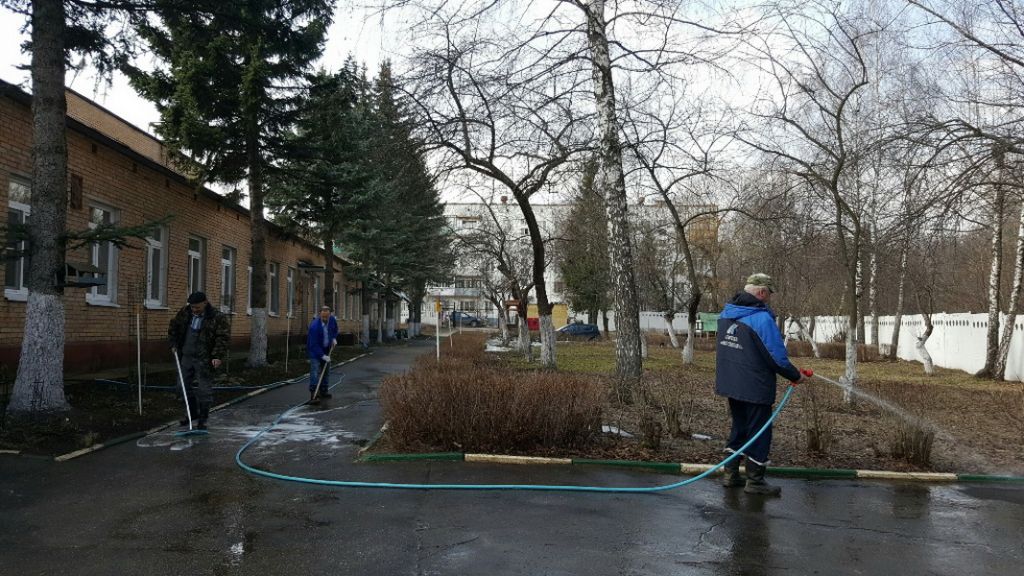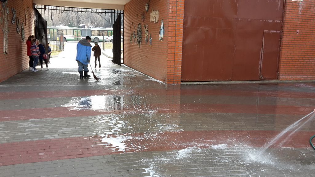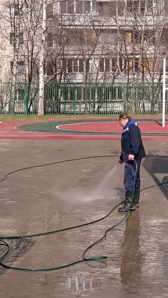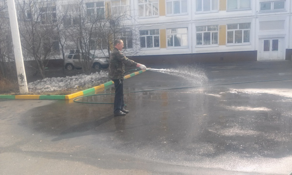 На территориях Центра образования проведены работы по промывке тротуаров и проезжих частей.