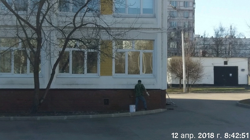 В корпусах школы начались работы по покраске цоколей зданий и ограждений.